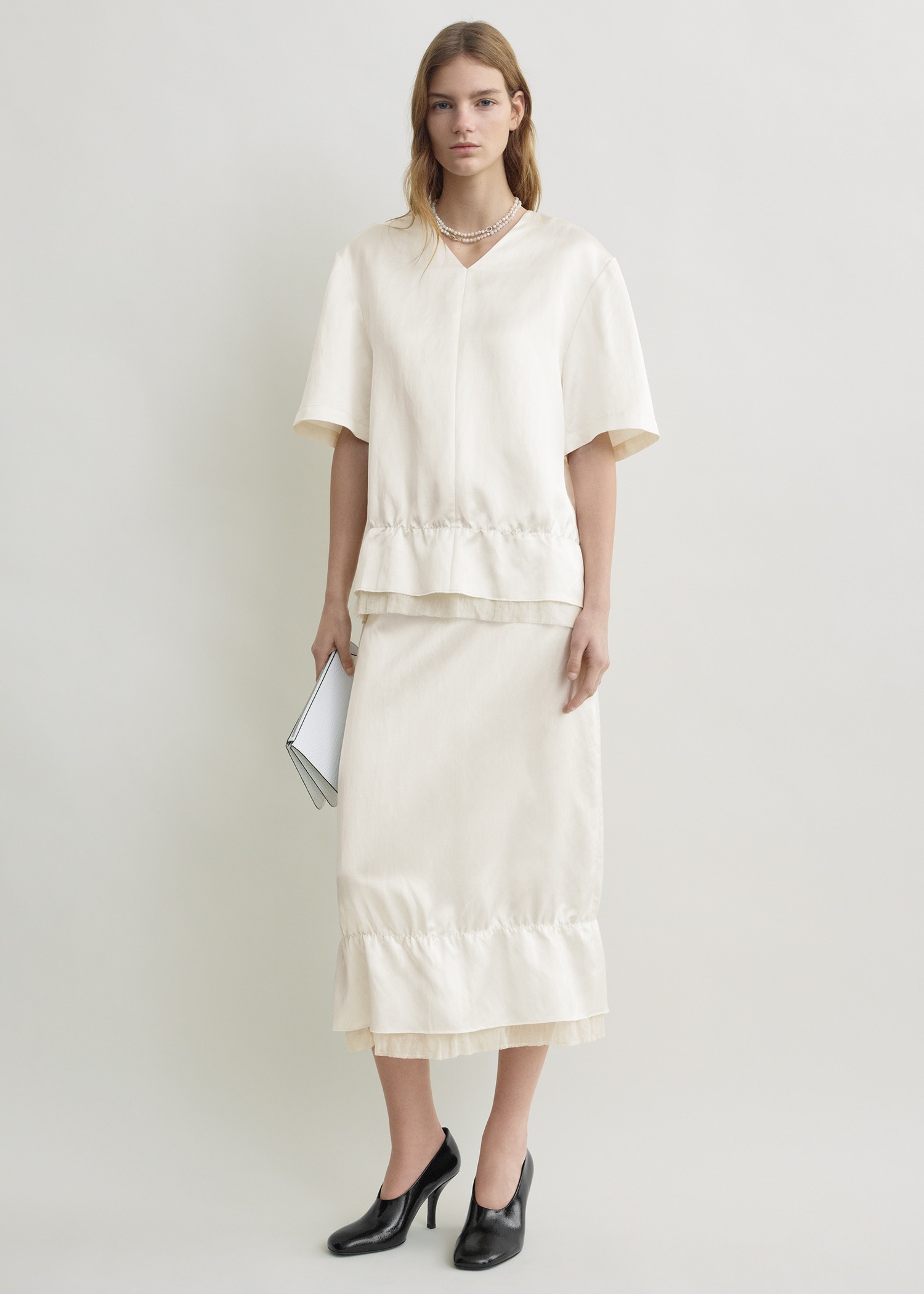 2 colors Online Exclusive레이어드 새틴 스커트 화이트1,090,000원