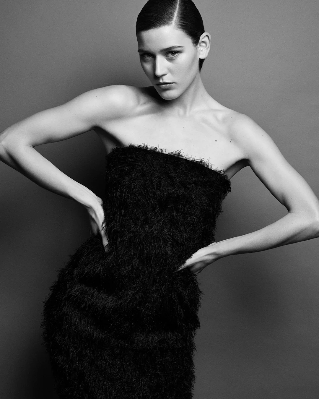 스트랩리스 필 쿠페 드레스