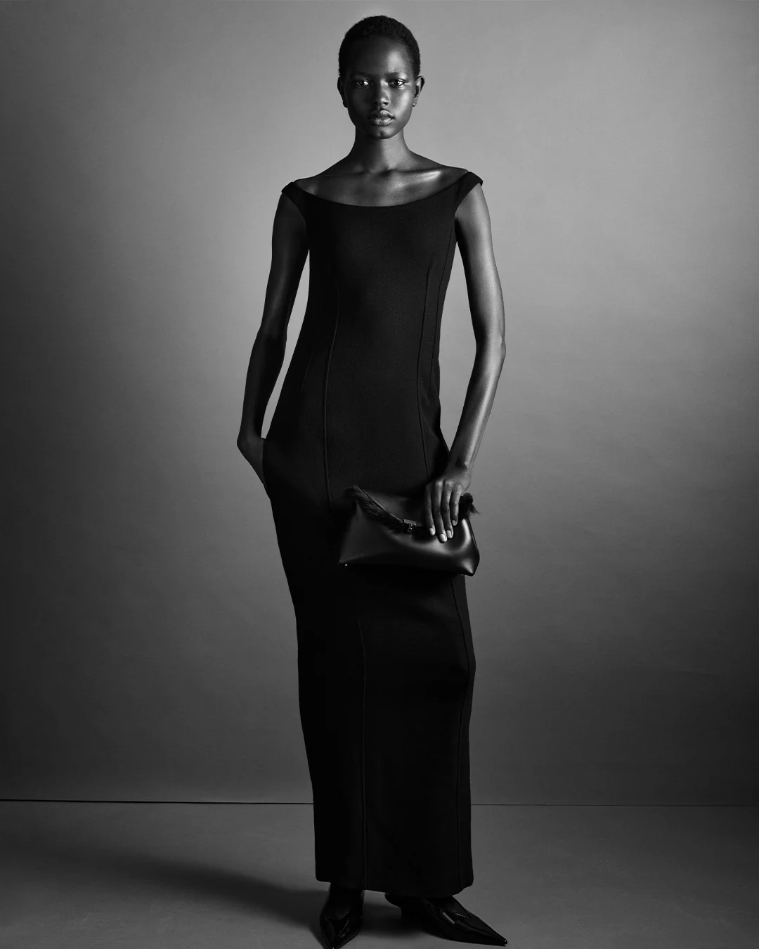 커브드 오프-숄더 드레스