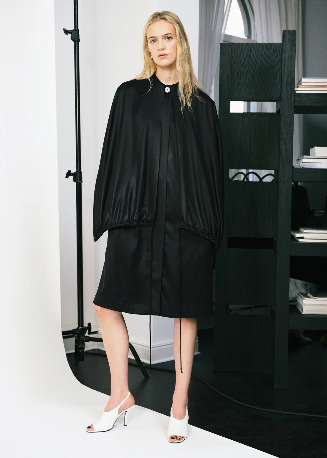 디태처블 케이프 이브닝 코트 블랙