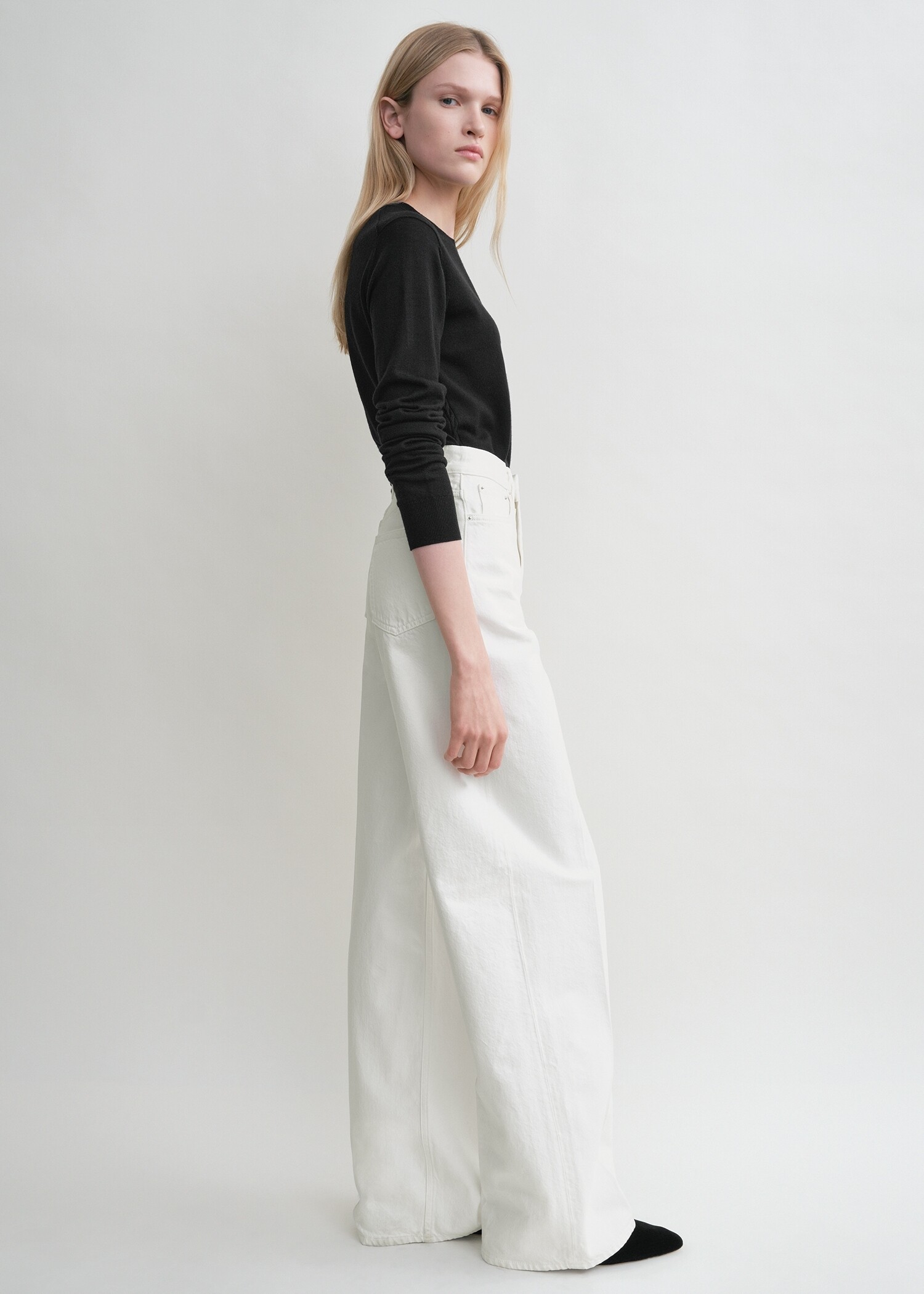- 허리가 높게 디자인되었으며, 다리 길이는 바닥까지 내려옵니다. 원하는 핏을 위해 제품 치수를 꼭 확인하세요. 더 여유로운 핏을 원하시면 허리 사이즈를 한 사이즈 크게 선택하고, 표준적인 다리 길이를 원하시면 길이 사이즈를 한 단계 작게 선택하세요.